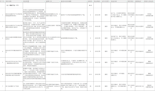 《项目册》共包括7项钢铁产业项目,具体内容如下图所示: