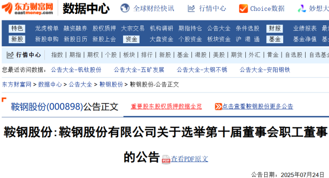 7月24日,鞍钢股份发布公告。