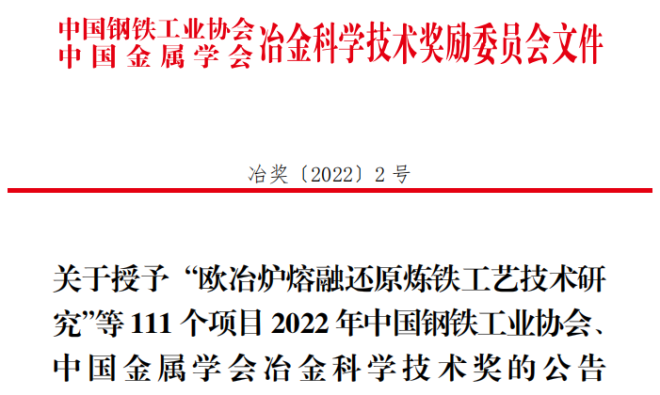 近日,中国钢铁工业协会发布公告,经严格评审,共111个项目被授予2022年中国钢铁工业协会、中国金属学会冶金科学技术奖。其中,包钢集团获二等奖一项,三等奖两项。
