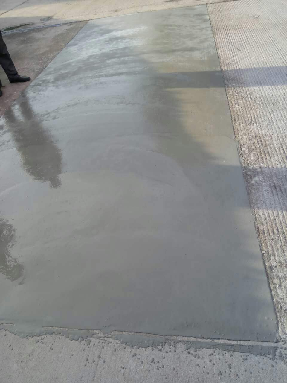 对修复道(路)面来说,传统做法是在水泥混凝土 路面的裂缝处灌注沥青,以达到封闭裂缝的目的,或在破损严重的路面上加铺一层沥青混凝土,或将破损部位凿除后以新拌混凝土填补。这些做法会出现新旧界面粘接不牢、施工时间长等现象,且这些方法只是应急措施,不能从根本上解决道路修复问题。