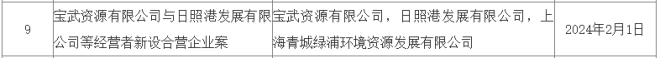 宝武资源有限公司与日照港发展有限公司等经营者新设合营企业案