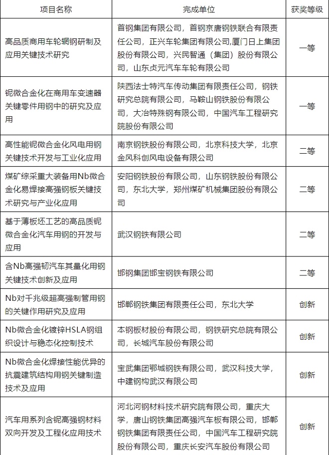 根据《中信铌钢技术进步奖奖励条例》规定,经各相关单位申报、严格评审,中信微合金化技术中心决定对拟授予2023年中信铌钢技术进步奖的10个项目予以公示(附件)。