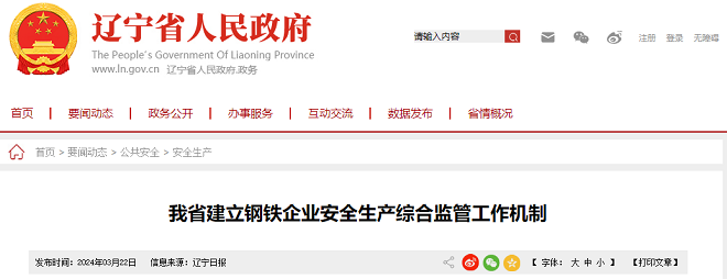 近日,辽宁省安委办发布通知,决定建立对钢铁企业安全生产的综合监管工作机制,切实加强钢铁企业的安全监管,坚决遏制较大事故多发势头,有效防范各类生产安全事故发生。