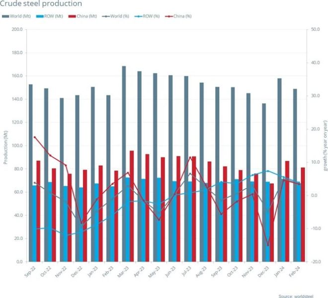 2024年2月全球粗钢产量