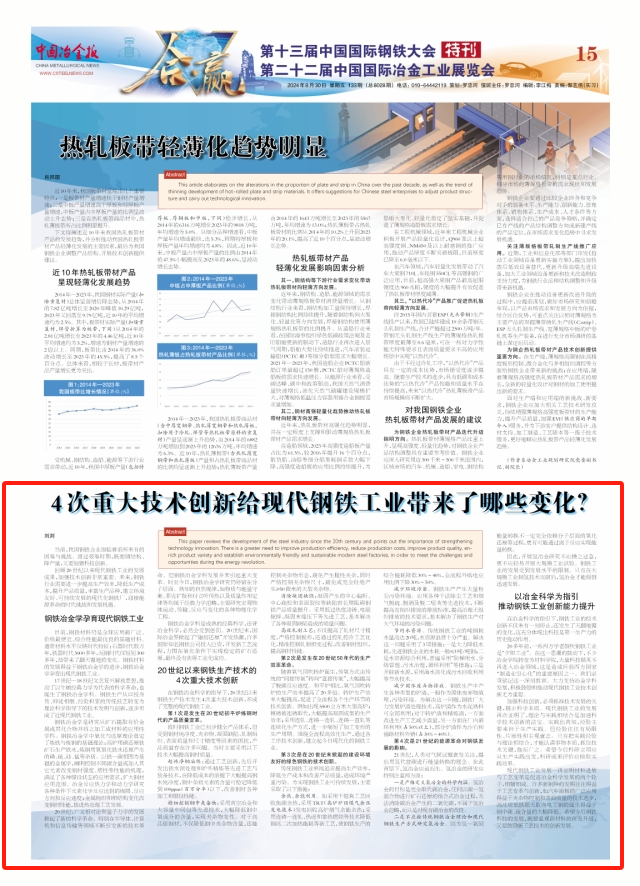 在冶金科学的指引下,钢铁工业的技术创新不仅未有一刻停止,还发生了天翻地覆的变化,这充分体现出科技是第一生产力的历史推动作用。