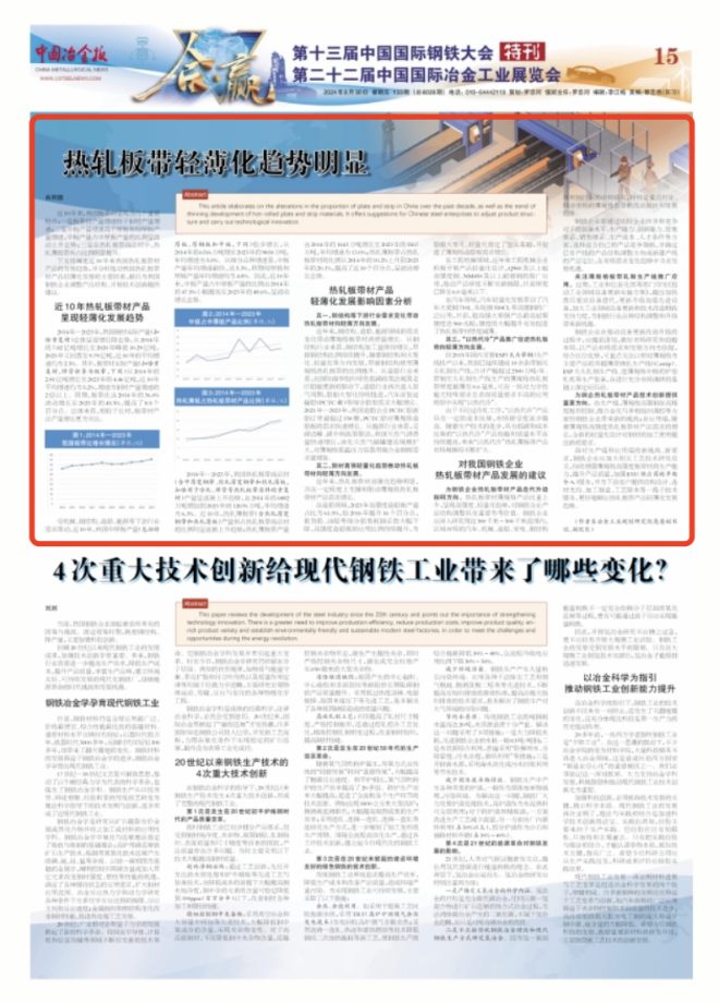 为钢企热轧板带材产品技术创新提供重要方向。在生产端,薄规格高强钢在高精度板形控制、微合金化与多相组织调控等方面给钢铁企业带来新的挑战;在应用端,随着薄规格高强度热轧板带材产品需求的增长,全新的轻量化设计对钢材的加工使用提出新的要求。