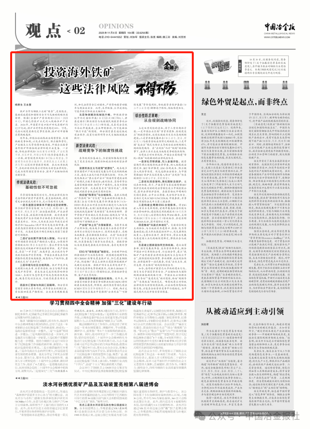 如今,海外铁矿投资已从单纯的商业行为,演变为关乎国家资源安全、产业链韧性与国际规则话语权的战略行动。中国企业必须摒弃“关系导向”“速度优先”的旧思维,转向“规则导向”“长期共赢”的新范式。唯有统筹应对传统法律风险与新型制度挑战,以法治思维驾驭地缘变局,方能在全球资源竞争中行稳致远,为中国式现代化筑牢坚实资源根基。