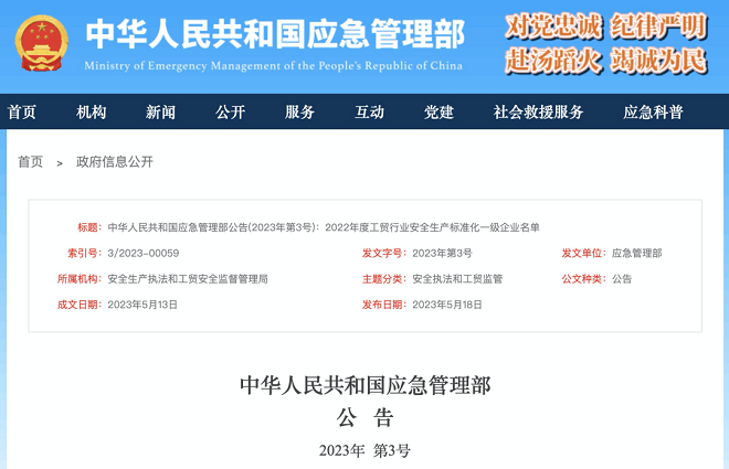 详情点击查看链接:https://www.mem.gov.cn/gk/zfxxgkpt/fdzdgknr/202305/t20230518_451015.shtml