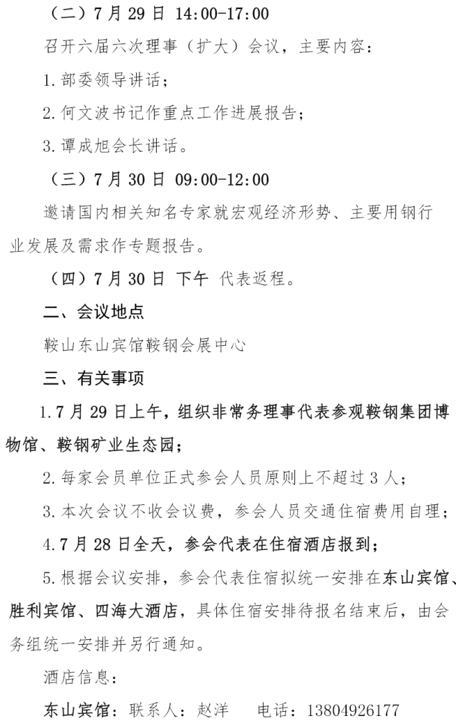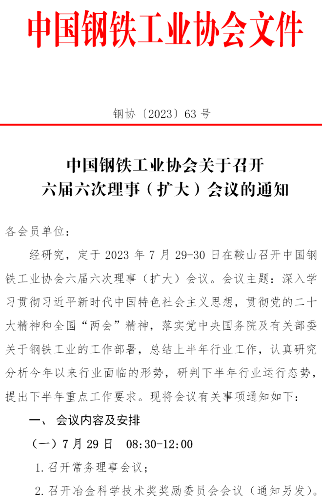 中国钢铁工业协会六届六次理事(扩大)会议即将召开