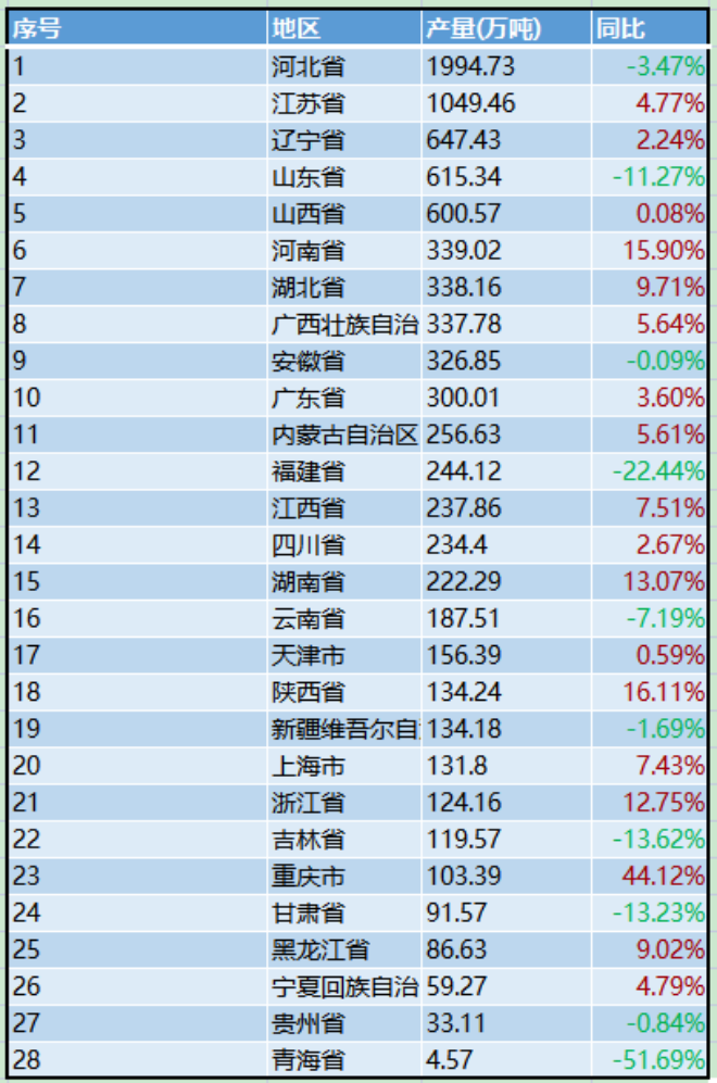 从分省数据来看,有4个省市1-6月粗钢产量同比增幅超过10%。其中四川增12.73%、天津增14.53%、上海增11.05%和重庆增34.42%。具体情况如下: