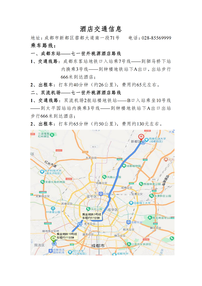 2、报到酒店:成都七一世外桃源酒店( 028-85569999)